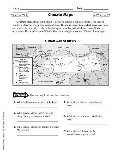 Climate Maps Worksheet For 4th - 5th Grade | Lesson Planet